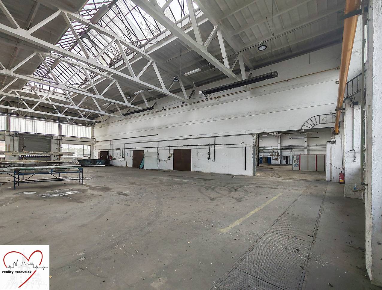 - podlaha: priemyselná, betón s vysokou pevnosťou, hlavná časť čiastočne upravená asfaltom